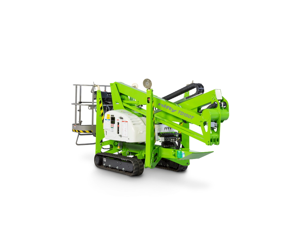 La plataforma elevadora sobre orugas TD150T ofrece un rendimiento general excepcional a partir de una base tan compacta y de peso ligero; y, con su carga segura de trabajo de 225kg, tiene amplia capacidad para transportar herramientas.